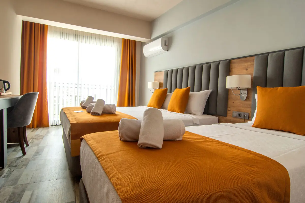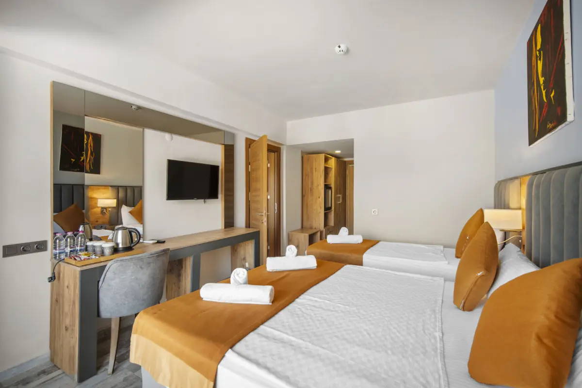 Odamız 6 kişiliktir. Bir odada çift kişilik yatak veya 1 adet tek kişilik yatak bulunmaktadır. Diğer odamızda 3 ayrı tek kişilik yatak bulunmaktadır.
